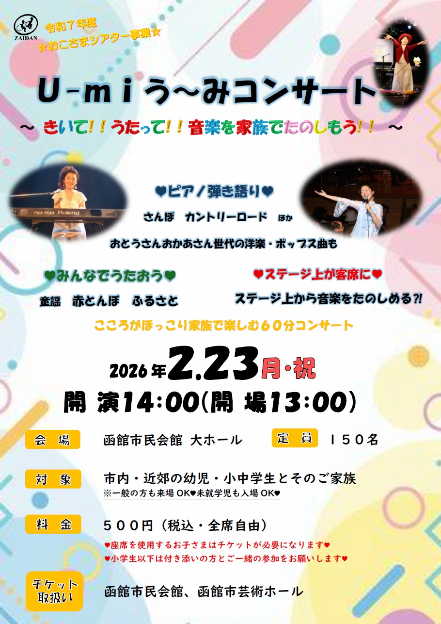 函館市民会館 0138-57-3111(午前9時~午後9時)